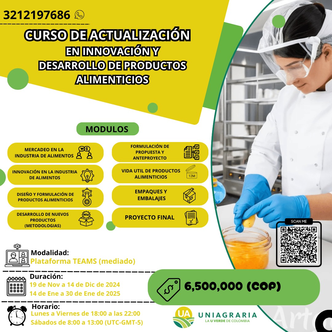 El programa de Ingeniería de Alimentos de Uniagraria forma personas que logran integrar conceptos de ingeniería de manera sistemática para el diseño de procesos y alimentos nutritivos, saludables e inocuos, así como alineados con los pilares institucionales.
